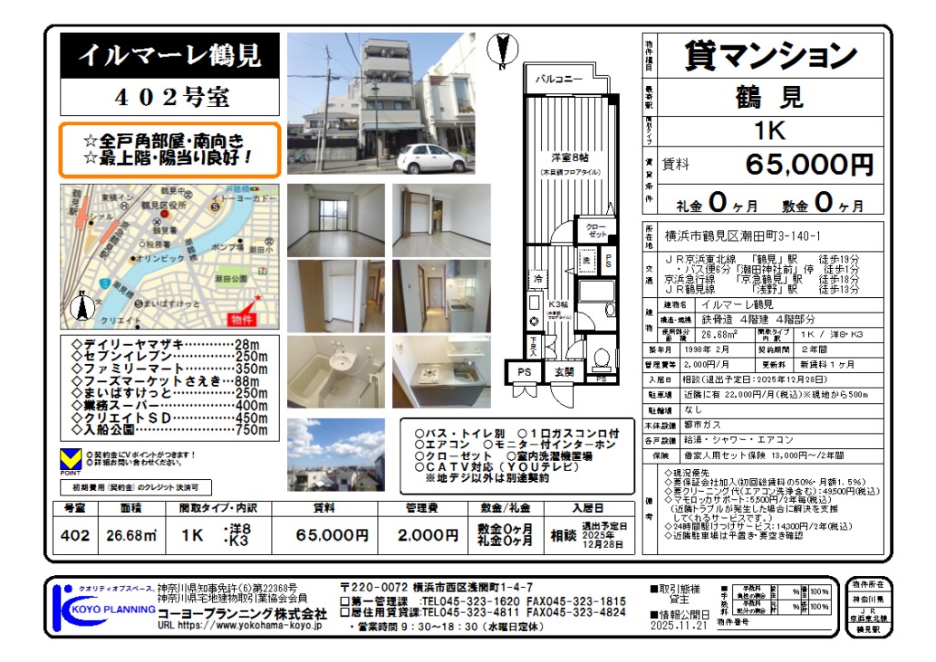 | 6.5万円 | 0ヶ月 | 京浜東北根岸線鶴見駅 | 26.68 m² | |||